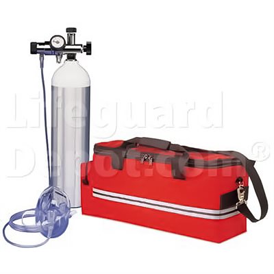• Each kit contains: an adjustable flow regulator (0 - 25 litres per minute), a disposable oxygen mask with tubing, a cylinder wrench. a “D” (425 litre capacity) aluminum cylinder (full), and a full Cordura® carrying case with an adjustable shoulder strap.