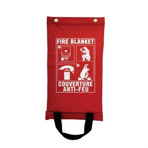 Fire blanket made of fire-resistant, 19 oz premium fiberglass fabric with sewn edges.