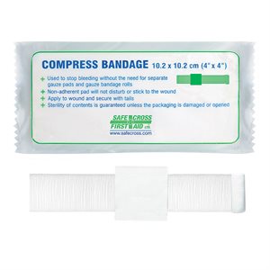 Easy-to-apply compress bandages used to stop bleeding without the need for separate gauze pads and gauze bandage rolls. Available in three sizes.